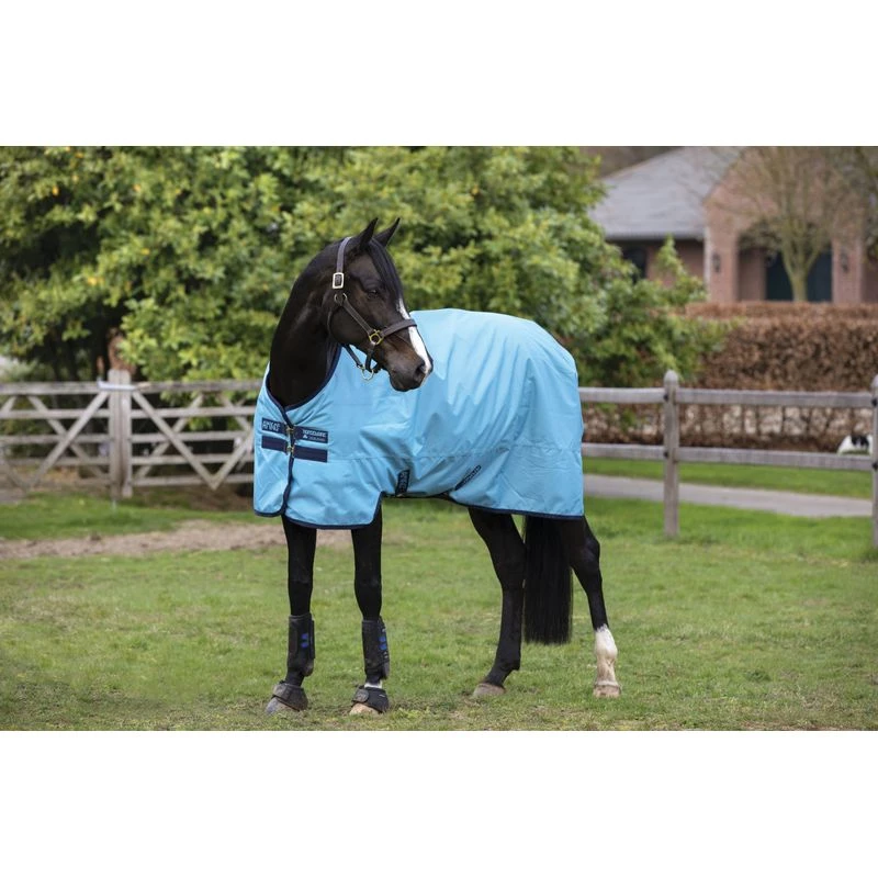 This blanket features a super-tough 600D ripstop, waterproof and breathable outer with antibacterial, anti-static, and shine enhancing polyester lining. Made with a classic double T-lock front, front leg arches designed to maintain freedom of movement, cross surcingles, and hood loops.