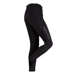 This exceptionally comfortable breech is made of a soft, quick drying and dirt repellent fabric. It has a a soft and sticky comfistick silicon full seat – perfect for the dressage court, or cross country runs. The side pockets are large enough to hold your mobile phone. There are no front seams, which keep the breech as comfortable as possible.