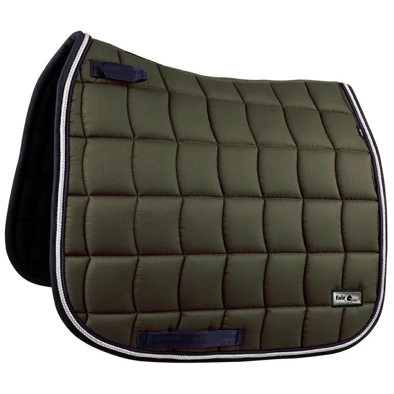 The Fair Play Xavier saddle pad has bold rectangular quilting and double trim all the way around.