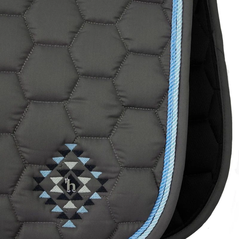 Our Horze Navajo saddle pad is designed with pretty honeycomb quilting. Quick-dry lining keeps your horse comfortable. Two rows of cord add an elegant touch to this saddle pad. The Aztec embroidery in the corner is a lovely detail. Pair this saddle pad with the rest of our Horze Navajo range for a full outfit.