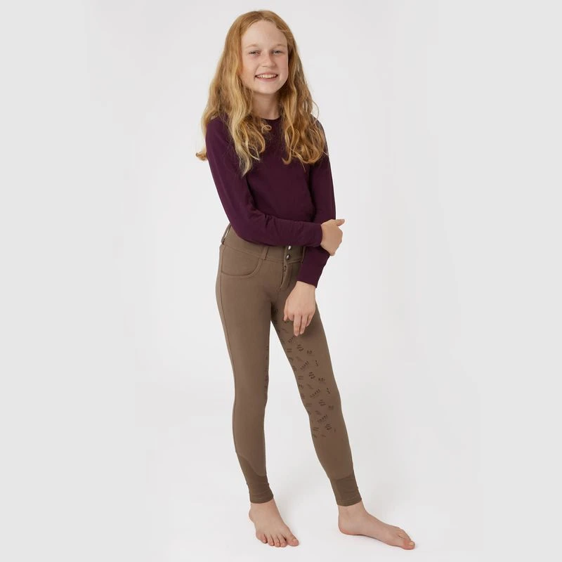 Horze Morgan Full Seat Breeches for kids are made with grippy silicone that keeps little riders safely in the saddle.