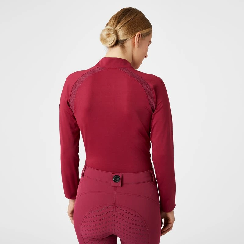 Horze Mia training shirt is super breathable due to mesh panels at the collar bones. The front zipper adds extra ventilation. Soft material perfectly adapts to your movement.