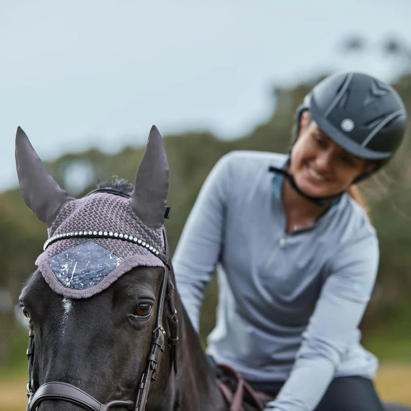 Muffle noises, block pesky flies and look great doing it with the Weatherbeeta Prime marble Shimmer Ear Bonnet.